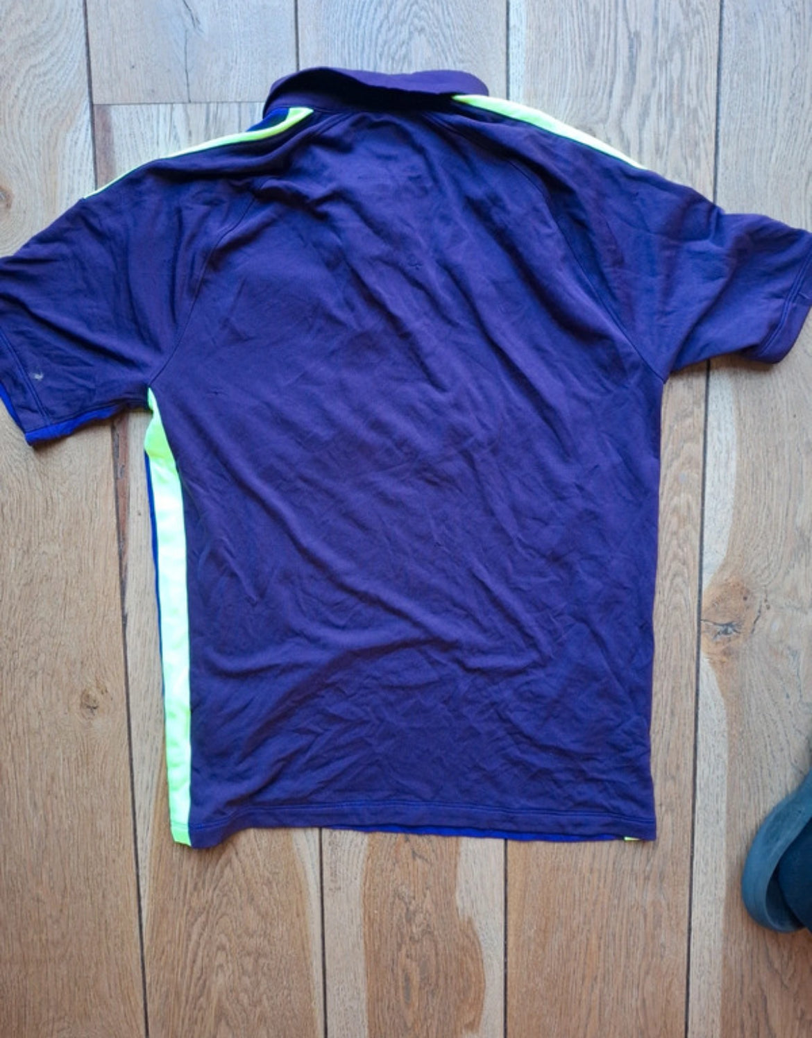 Diseño elegante en tono azul oscuro con detalles en verde flúor, cuello tipo polo y sponsor Etihad Airways en el frontal. Una estética moderna y diferenciadora que convirtió esta camiseta en una de las más reconocibles de aquella temporada.