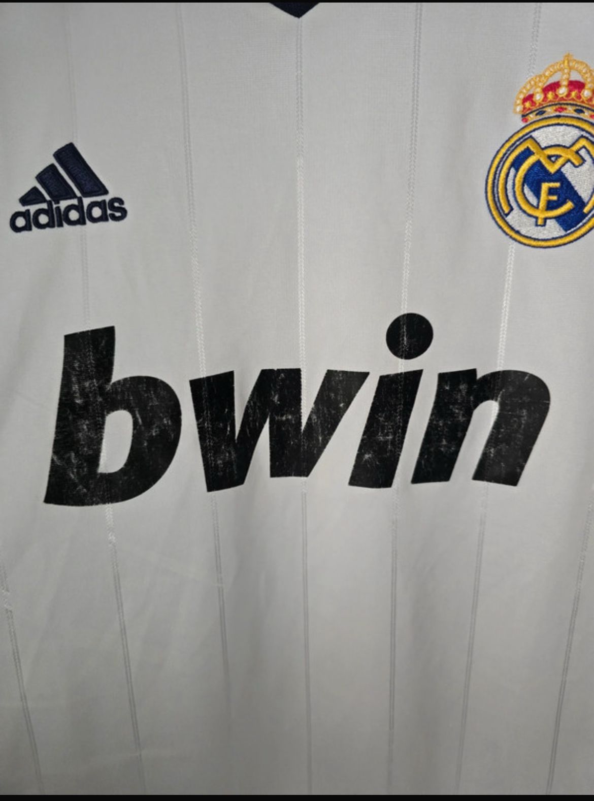 Camiseta auténtica de la primera equipación del Real Madrid de la temporada 2012-13 en talla L y buen estado aunque con signos de uso y desgaste significativos de una prenda vintage como se aprecia en las imágenes, especialmente en la parte frontal. Esta prenda es imprescindible para coleccionistas y apasionados del fútbol vintage, con los emblemáticos colores blancos del Madrid y el diseño distintivo de esa temporada, en la que figuras como Cristiano Ronaldo, Karim Benzema y Sergio Ramos lideraron al equipo en una emocionante campaña en la que el club luchó en La Liga y en competiciones europeas bajo la dirección de José Mourinho. Fabricada con materiales de alta calidad, esta camiseta ofrece tanto estilo como comodidad, ideal para revivir el espíritu de un equipo que marcó una era. Perfecta para quienes buscan una pieza histórica para su colección o desean llevar con orgullo la esencia del Real Madrid en cada ocasión.