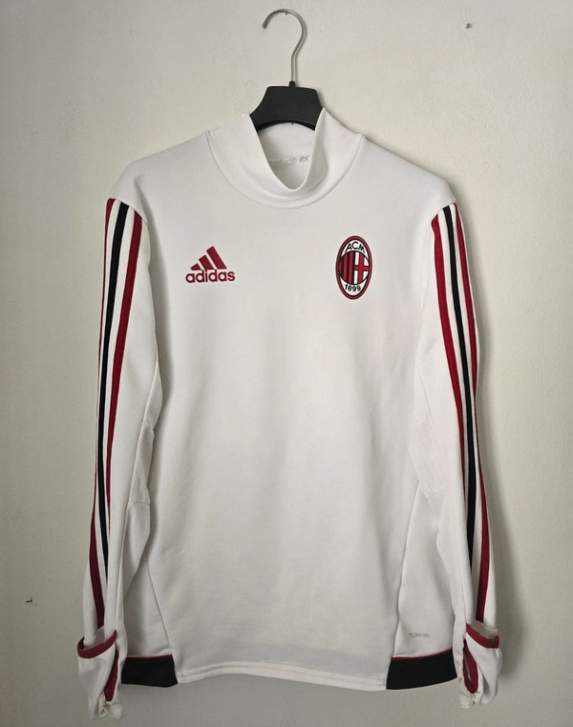 Sudadera de entrenamiento oficial del AC Milan correspondiente a la temporada 2017-18, fabricada por el reconocido fabricante alemán.