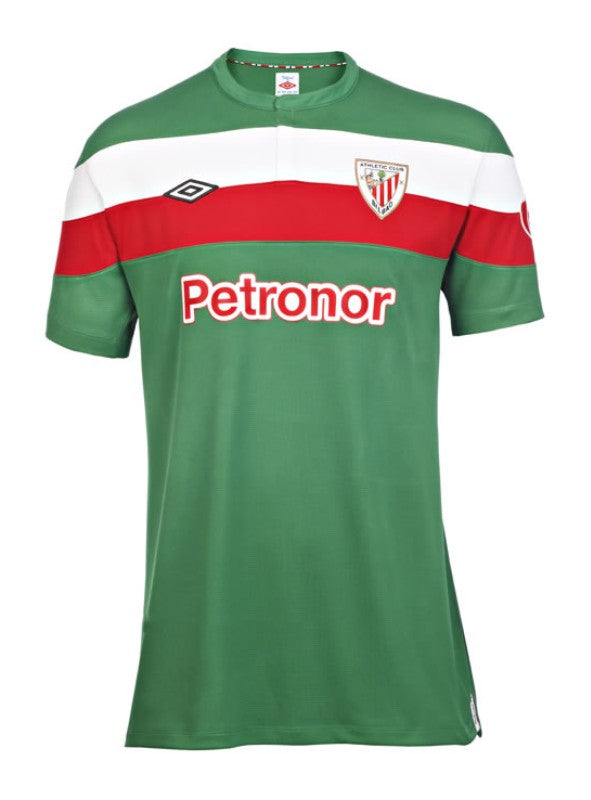 Camiseta auténtica de la segunda equipación de la marca Umbro del Athletic de Bilbao de la temporada 2011-2012 con los colores de la ikurriña, camiseta en talla M, nueva con etiqueta original pero con un pequeño desperfecto en la P del logo de Petronor.