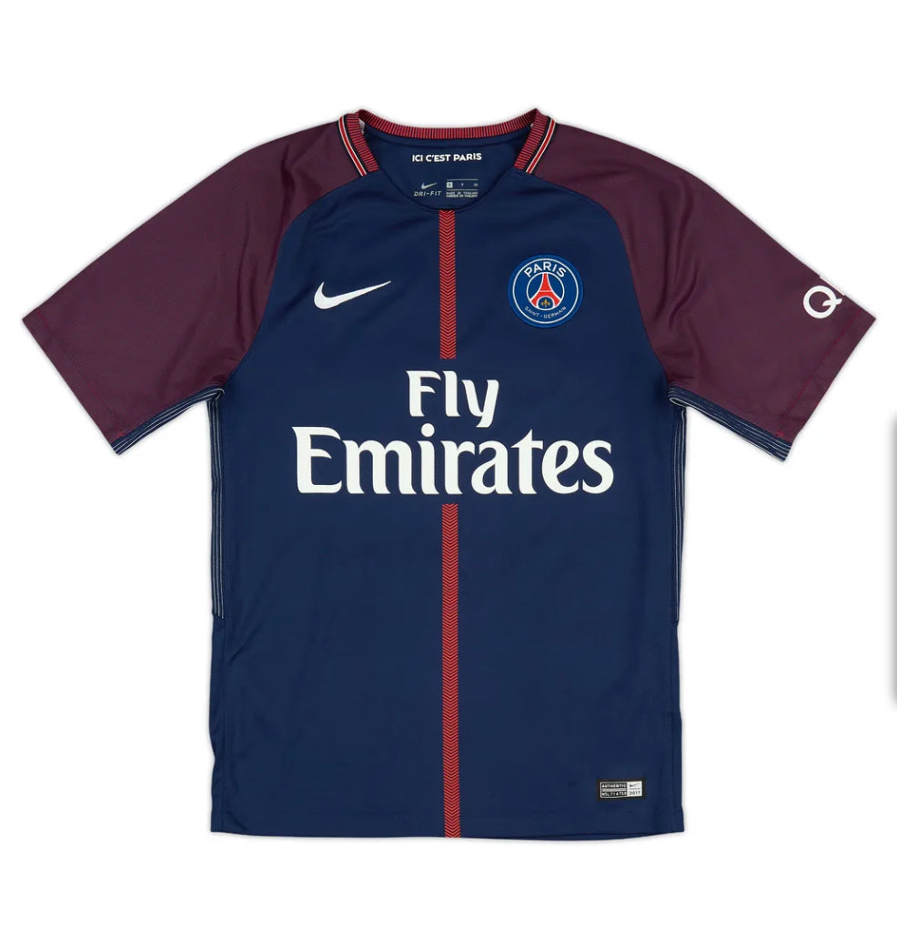 Primera equipación del Paris Saint-Germain correspondiente a la histórica temporada 2017/18, el curso que marcó el debut de Neymar Jr con el dorsal 10 tras su fichaje récord.
