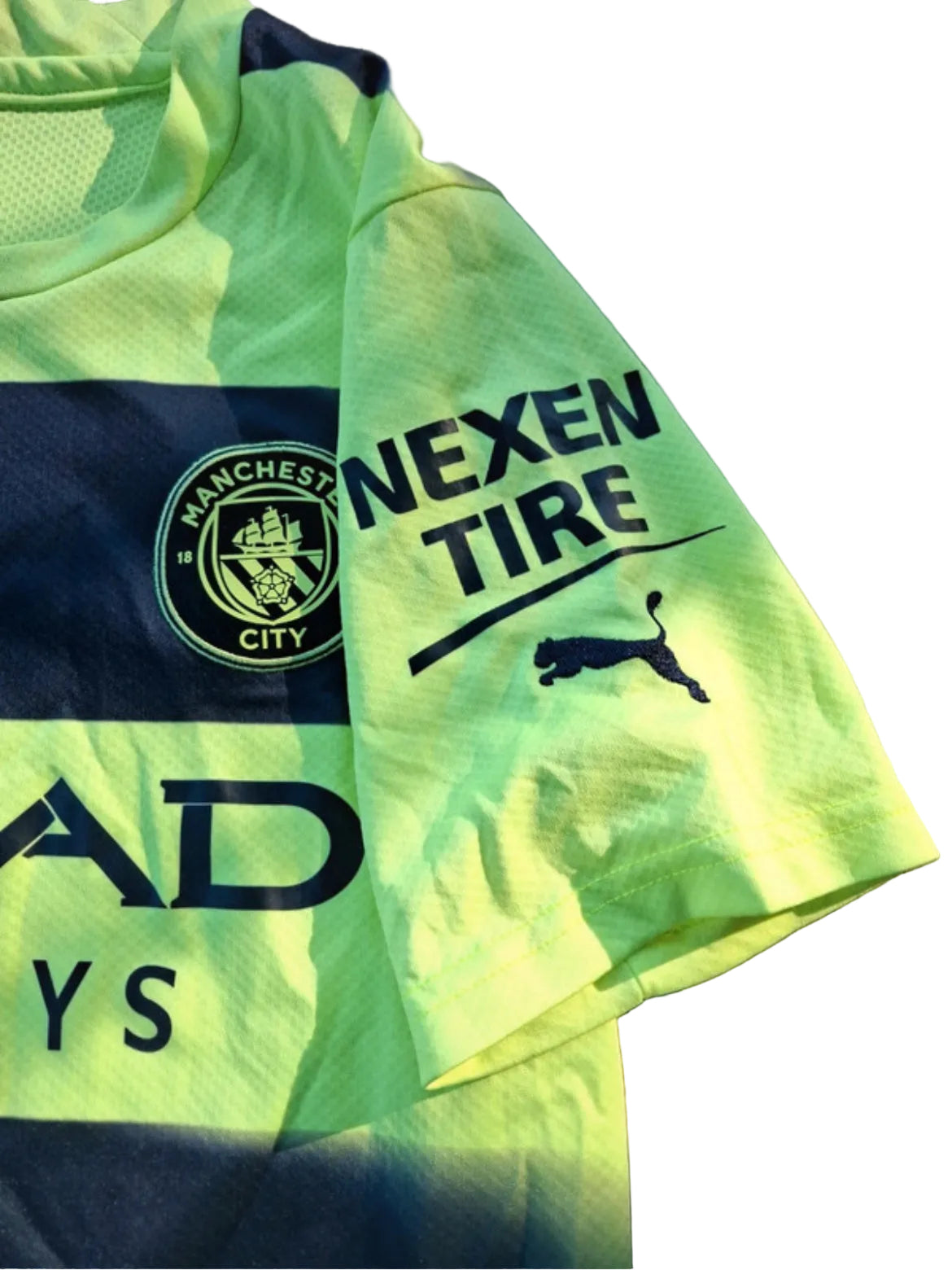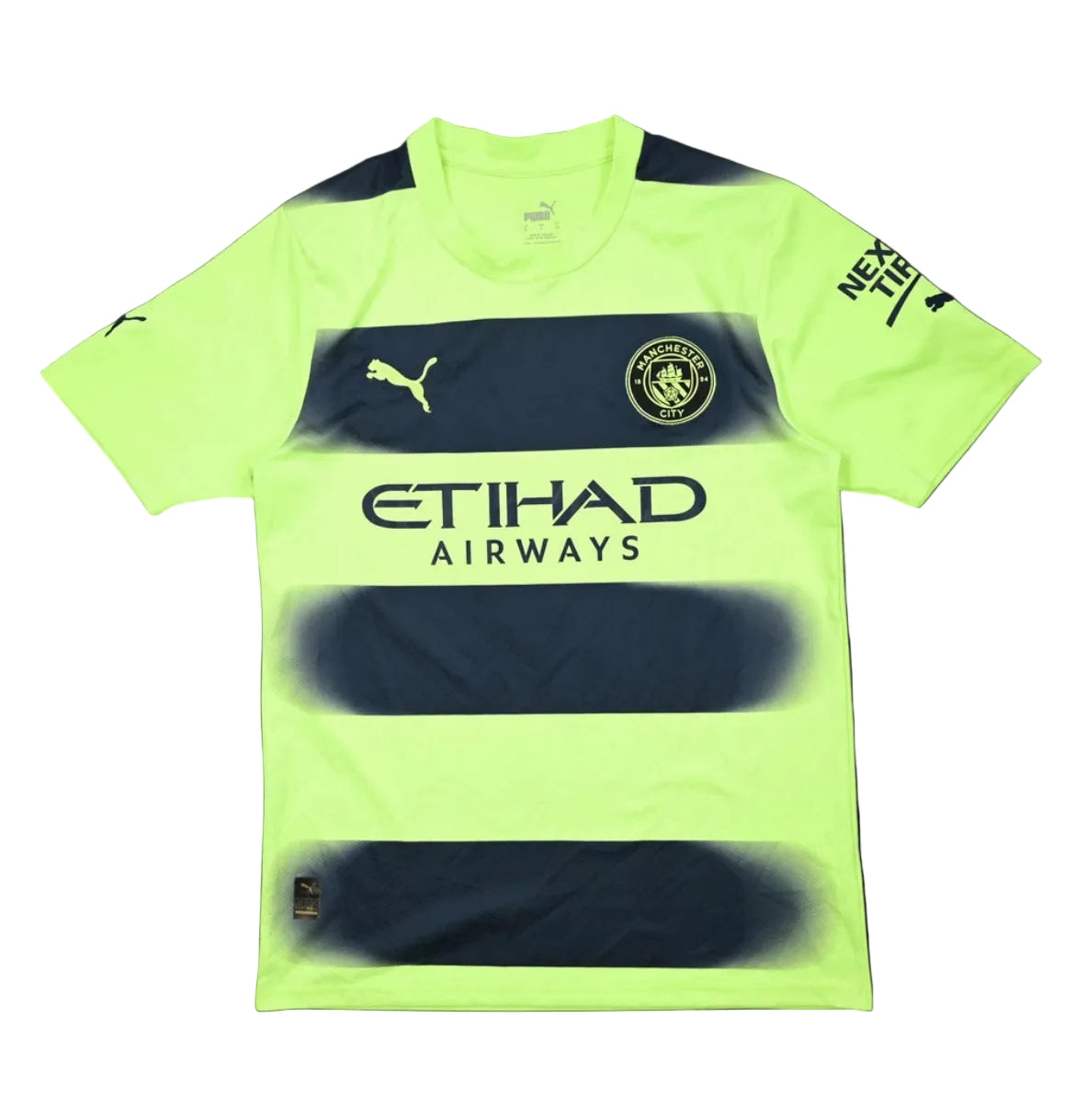 La equipación destaca por su diseño moderno y llamativo, con el sponsor Etihad Airways en el frontal. La prenda se encuentra en muy buen estado de conservación, ideal tanto para coleccionistas como para lucir en el día a día.