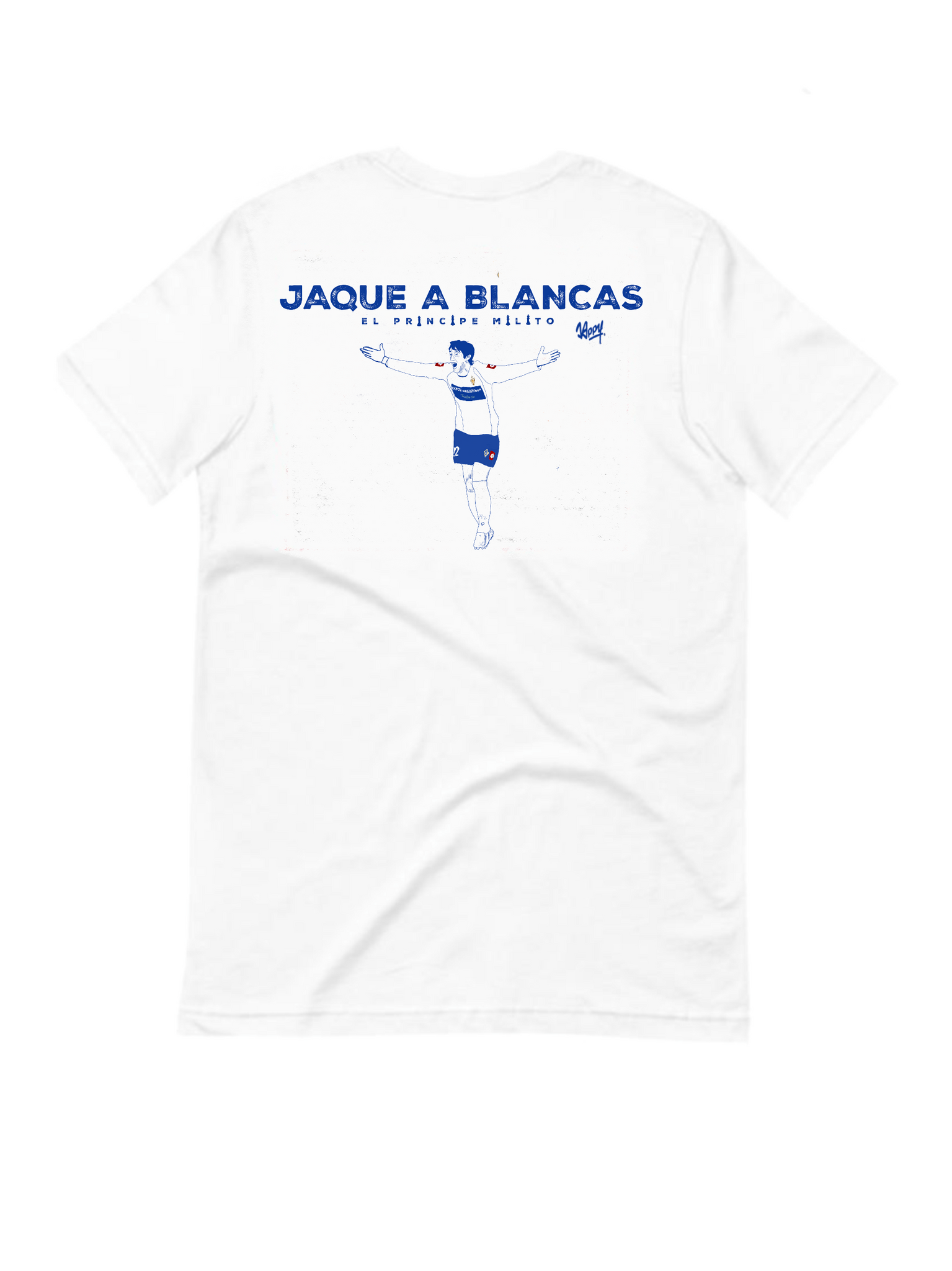 Esta camiseta exclusiva de Jappy Football rinde homenaje a una de las mayores gestas del fútbol español: la exhibición inolvidable de Diego Milito con el Real Zaragoza frente al Real Madrid en la Copa del Rey.
