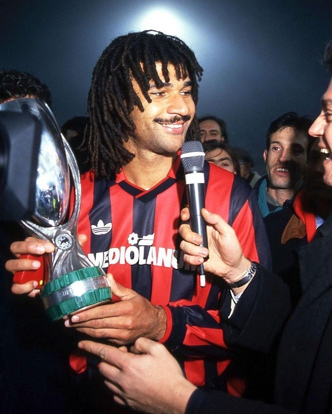 Revive la época dorada del AC Milan con esta icónica chaqueta de chándal auténtica usada en las temporadas 1990-93, años en los que el club rossonero dominaba Europa bajo la dirección de Arrigo Sacchi y Fabio Capello.